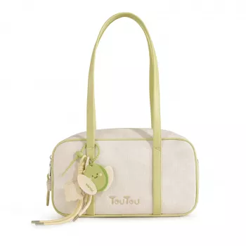 Elegant Boston-Style Canvas Shoulder Bag with Chic Pendant