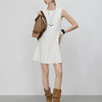 Minimalist Old Money Sleeveless A-Line Pleated Dress for Women